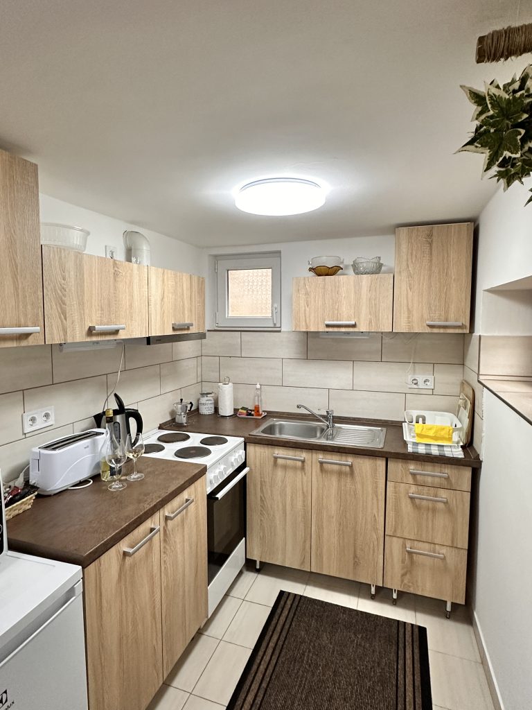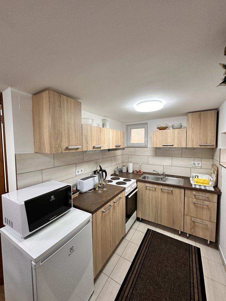 Konyhánk mindennel fel van szerelve, amire csak szüksége lehet: tűzhely, mikrohullámú sütő, hűtőszekrény, vízforraló, edények és evőeszközök. Legyen szó egy reggeli kávéról vagy egy kiadós vacsoráról – itt bármikor elkészítheti kedvenc fogásait.