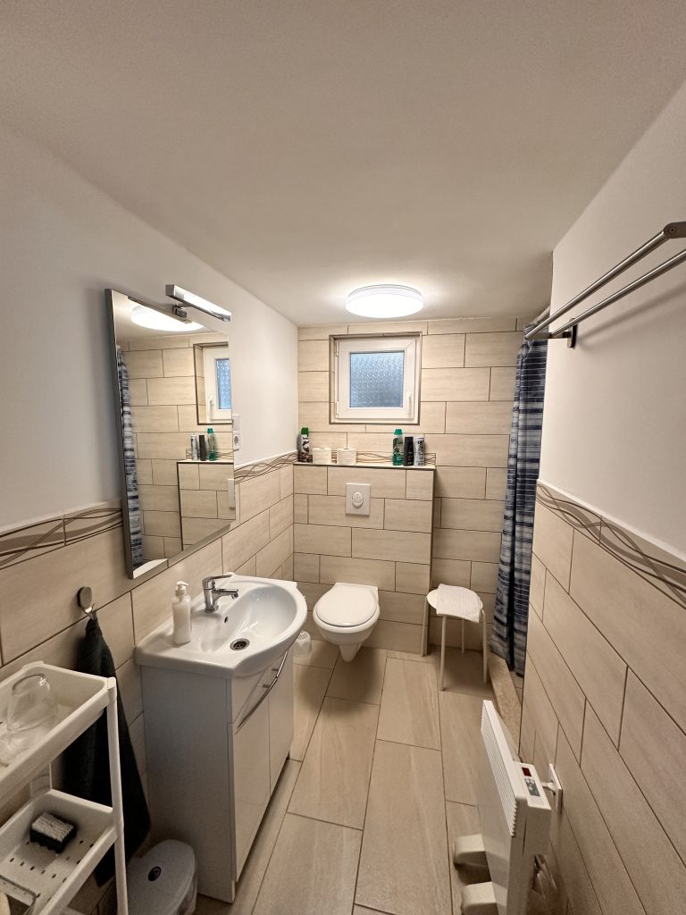 Modern zuhanyzós és kádas fürdőszobáink igényesen felszereltek, minden alapvető kellékkel. A friss, világos burkolatok és a rendezett elrendezés biztosítják a kellemes élményt minden használat során.